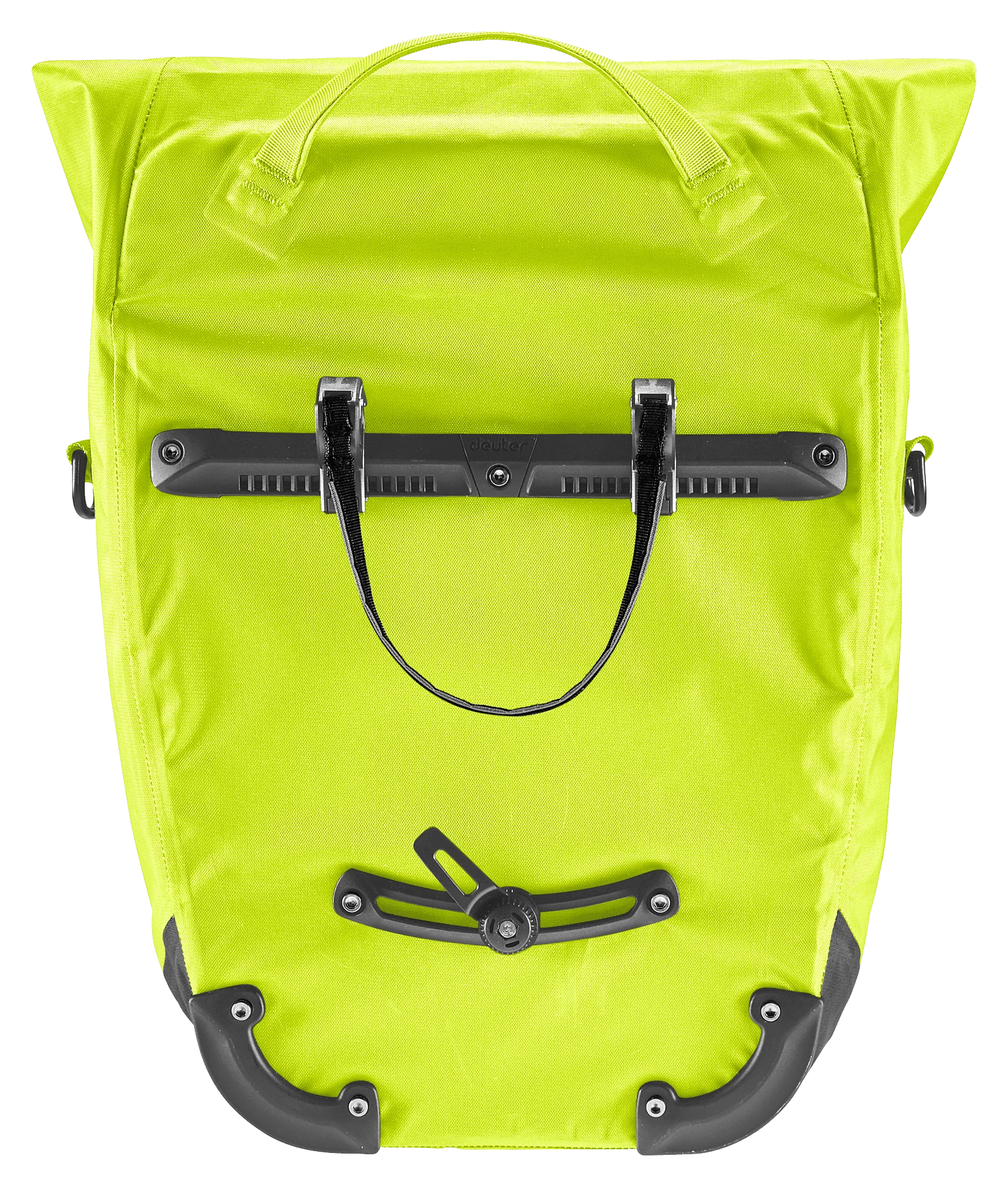 Maximum freedom of movement is provided by the newly developed BagFix holder. Two guide rails and two hooks provide a reliable hold for the bike bag during the ride. Thus, the load is 100% on the rear wheel and not on the back. When stationary, the bag can be removed from the carrier with just one handle and used as a shoulder bag.