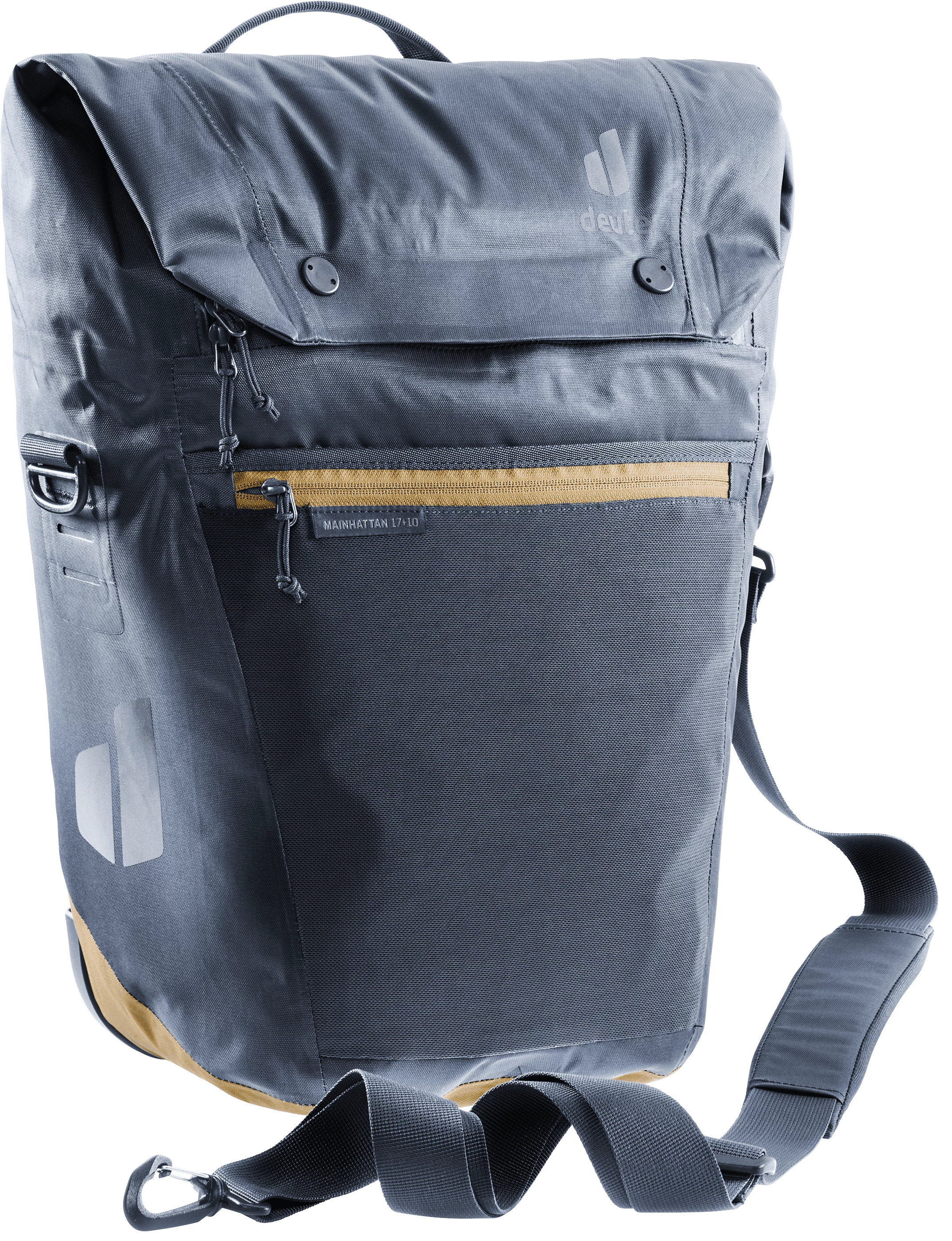 The waterproof bike bag keeps purchases, change of clothes and work materials safe from the penetration of moisture in the rain or splashing water. Thanks to the generous pocket flap with magnetic closures, the volume of this organizational talent can be expanded by an additional 10 liters of storage space.