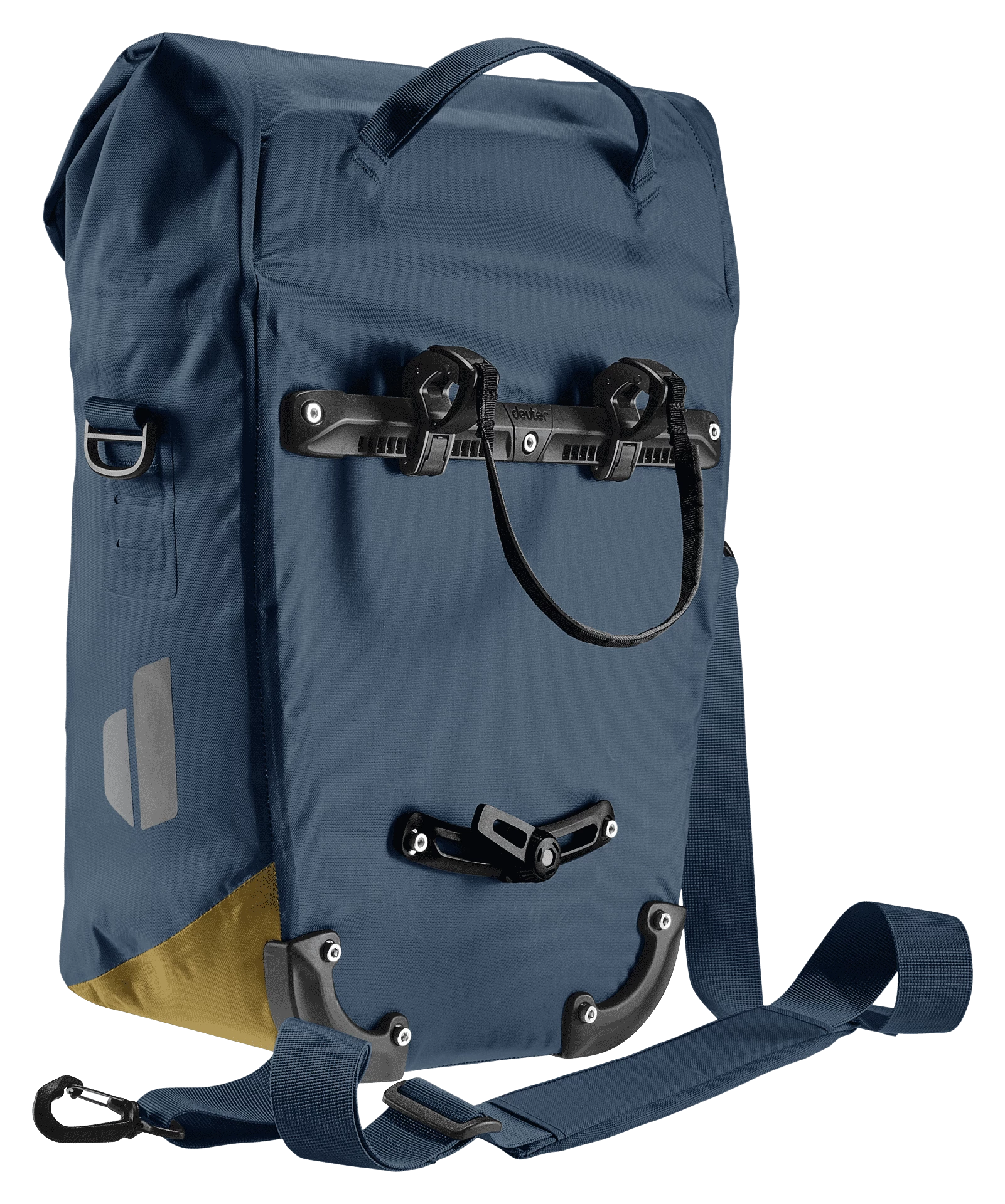 Maximum freedom of movement is provided by the newly developed BagFix holder. Two guide rails and two hooks provide a reliable hold for the bike bag during the ride. Thus, the load is 100% on the rear wheel and not on the back. When stationary, the bag can be removed from the carrier with just one handle and used as a shoulder bag.