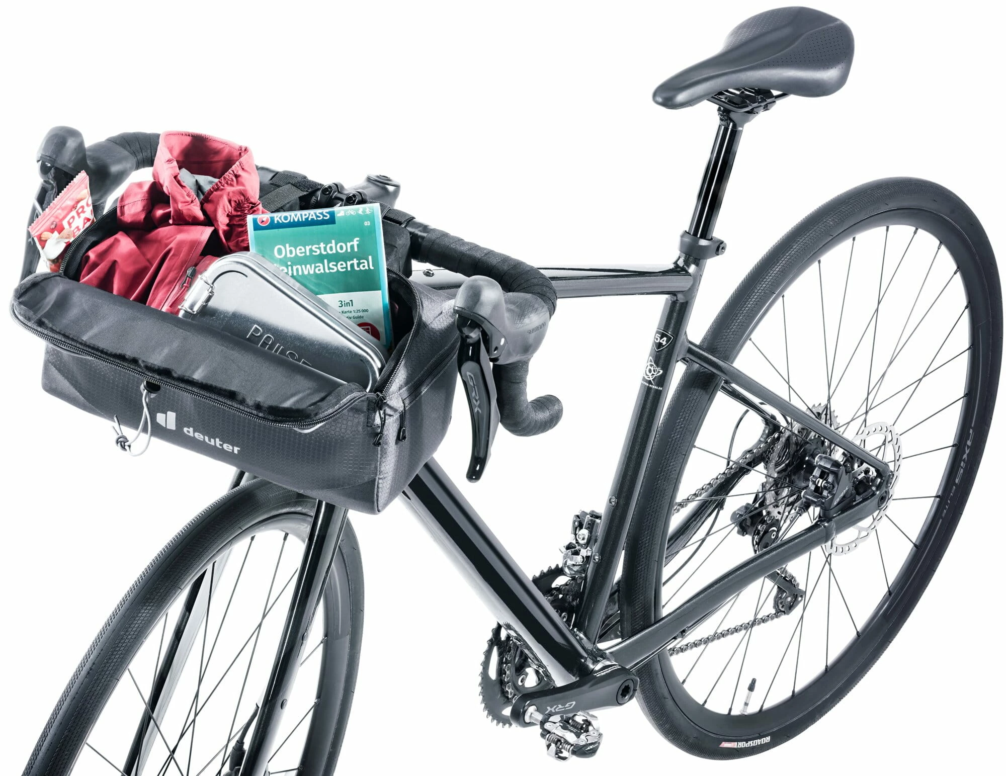 The sturdy webbing straps of the bike bags can be adjusted via Velcro fasteners and ensure a secure hold. Included spacers allow mounting on a variety of handlebars.