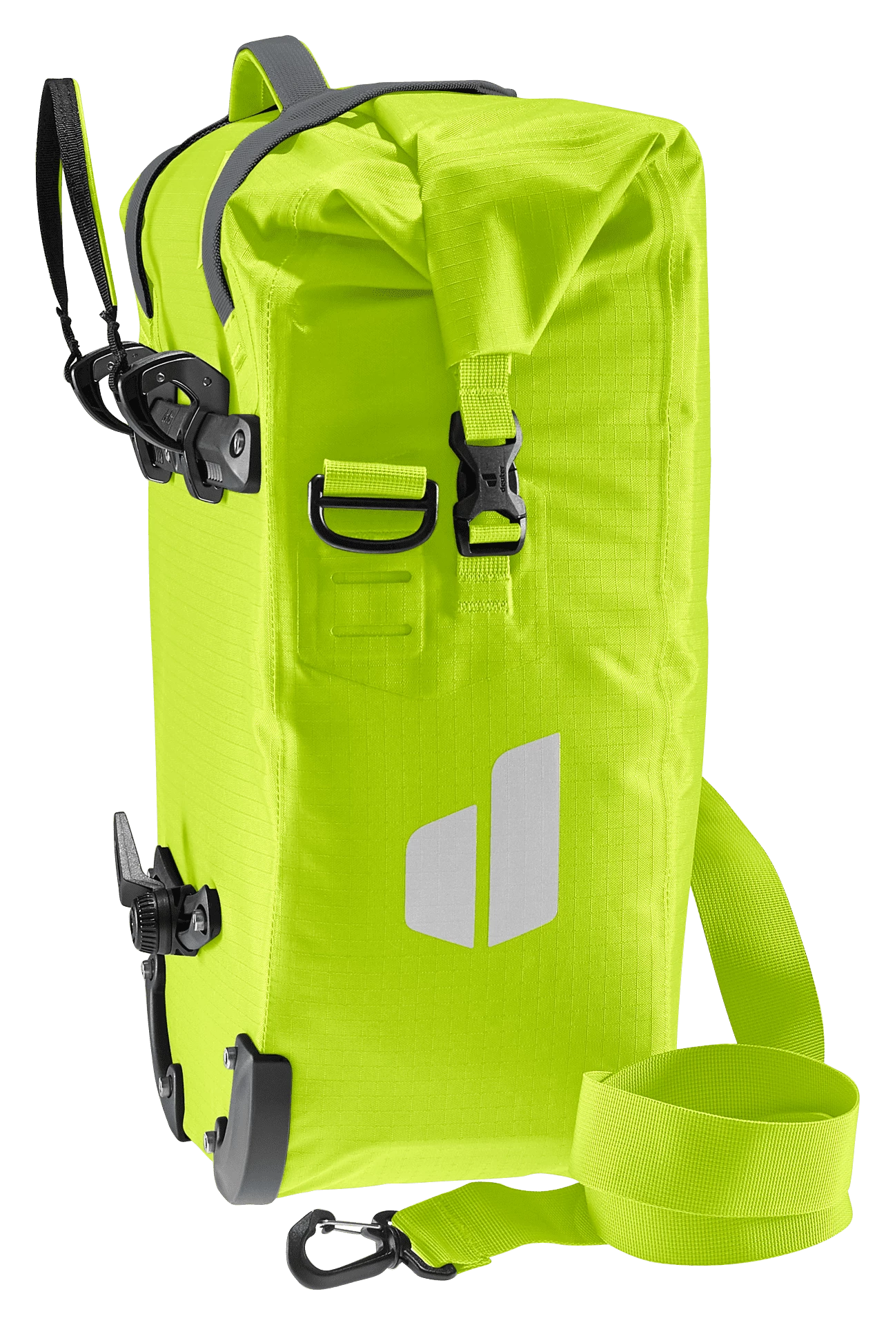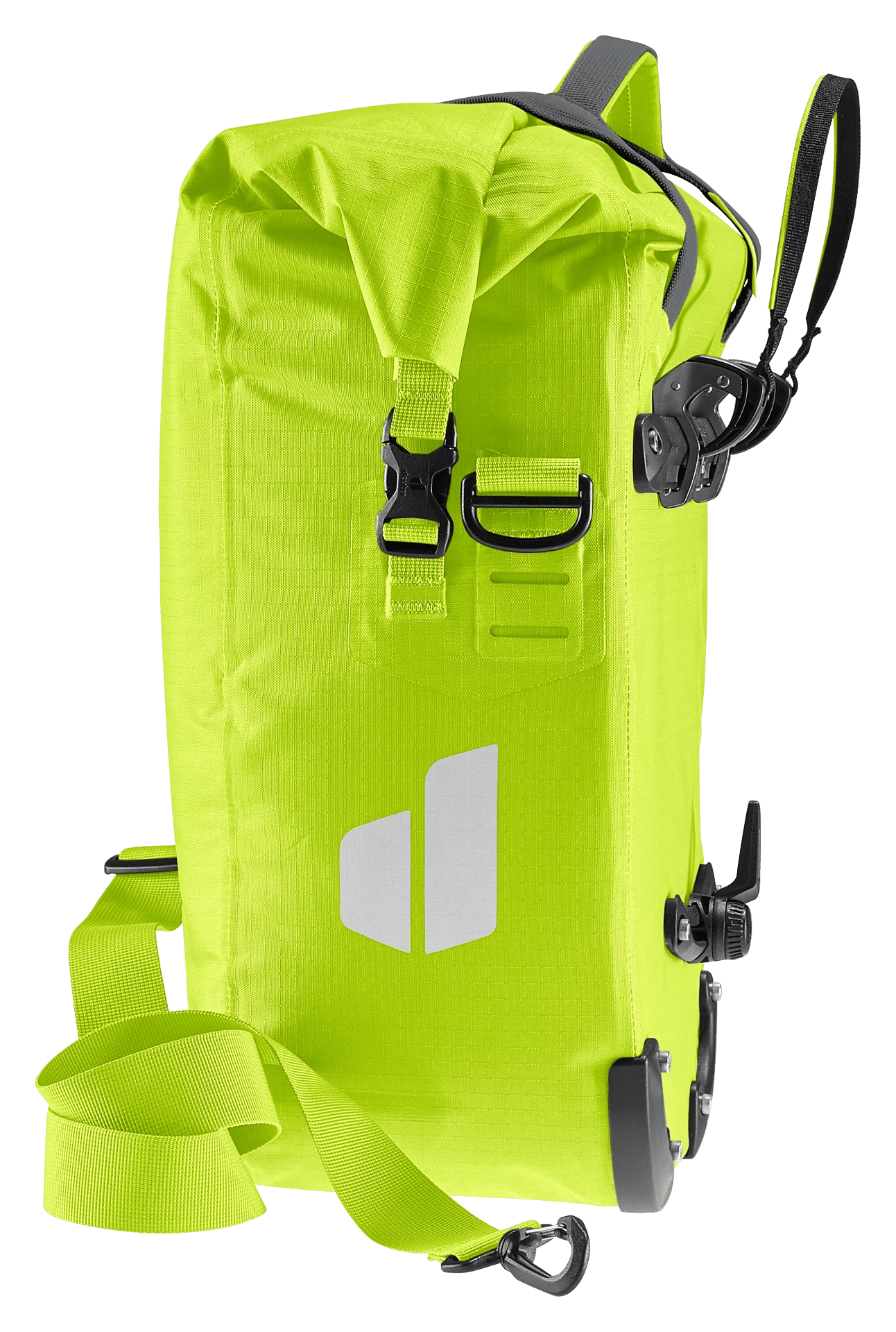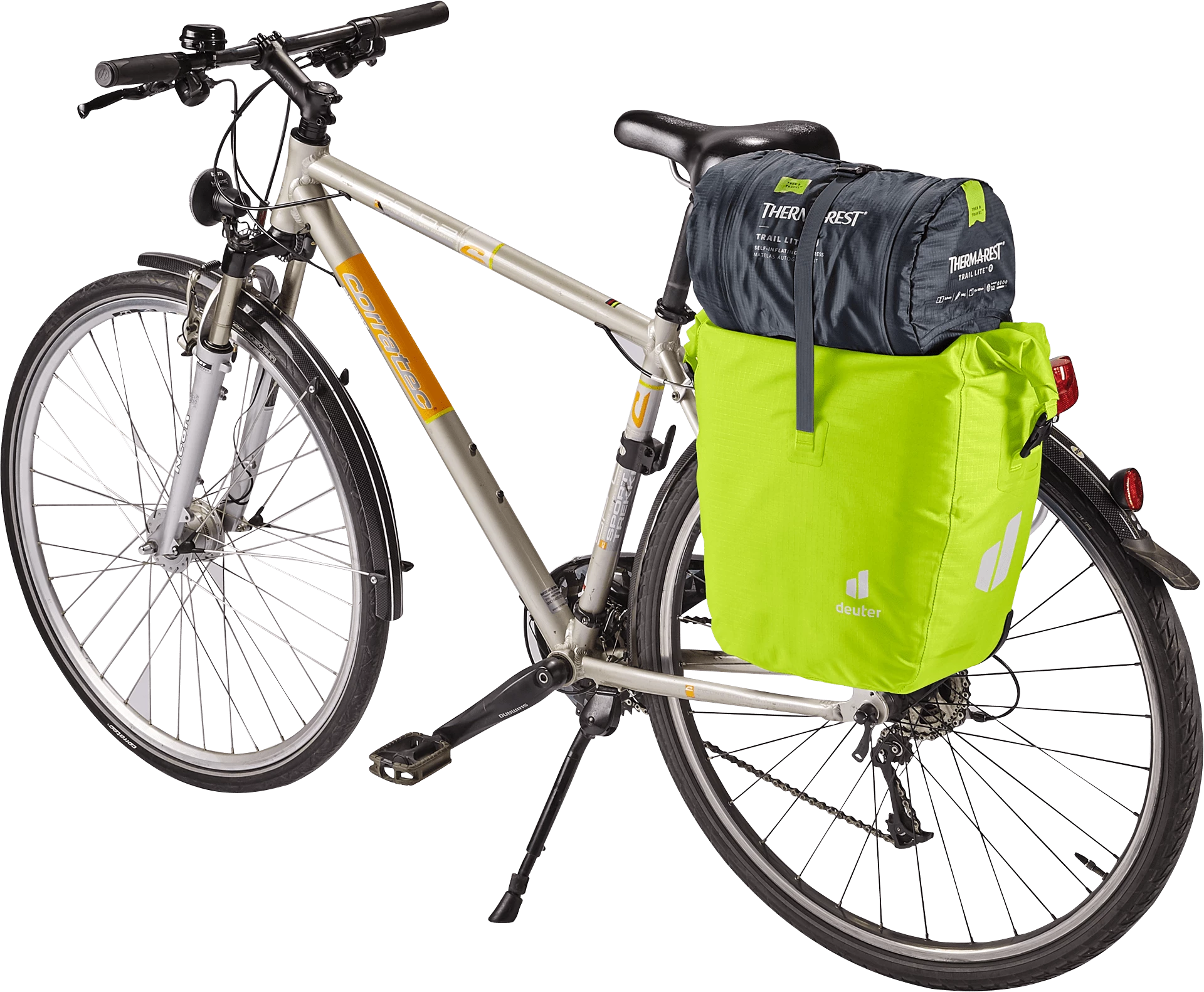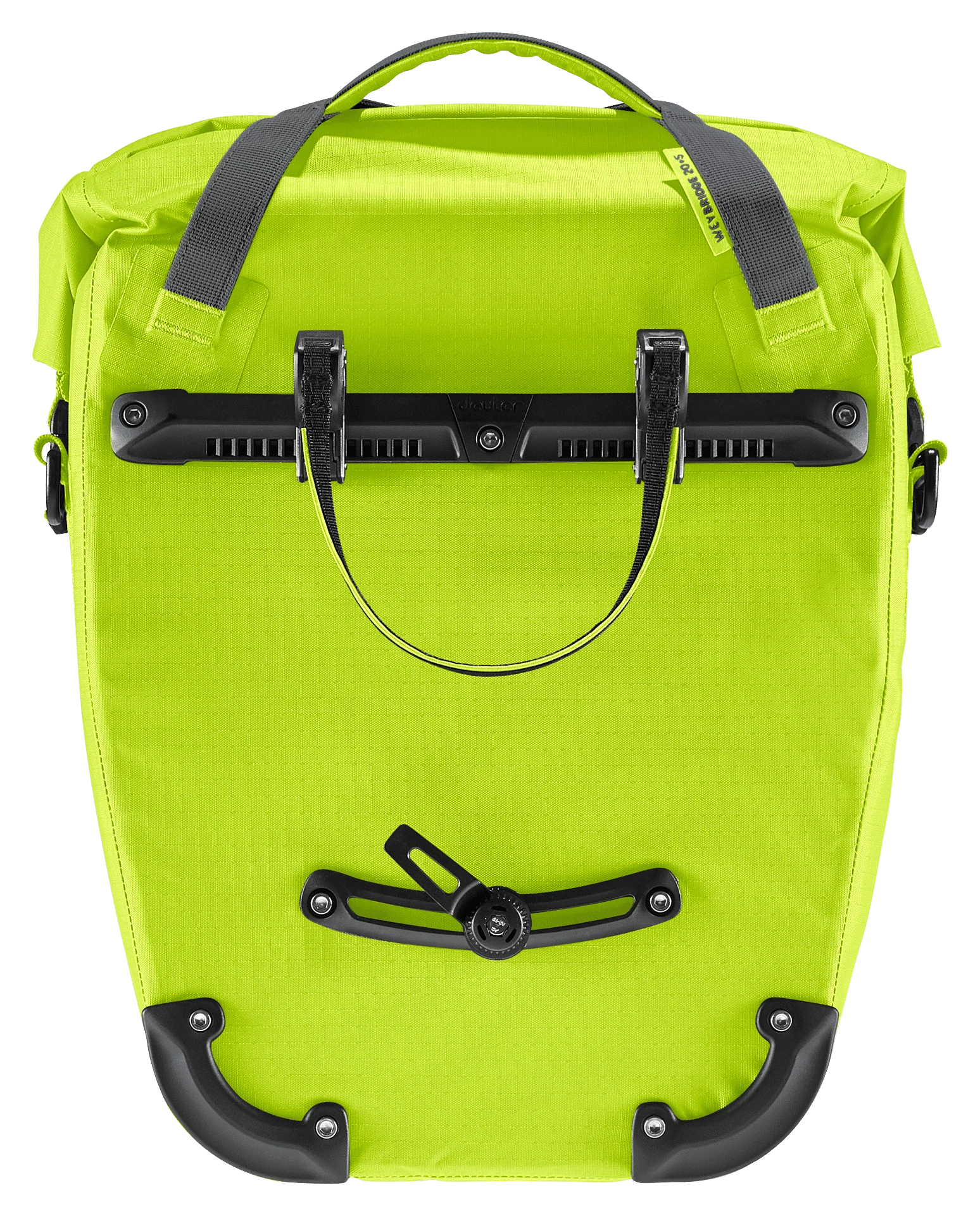 Die wasserdichte Fahrradtasche bewahrt Reisegepäck sicher vor dem Eindringen der Nässe durch Regen oder Spritzwasser. Dank des 2-Wege-Rolltopverschlusses kann das Volumen um zusätzliche 5 Liter erweitert werden. Die neu entwickelte BagFix-Halterung sorgt für maximale Bewegungsfreiheit, da die Last zu 100% auf dem Hinterrad und nicht auf dem Rücken des Bikers liegt. Die Tasche kann mit nur einem Handgriff vom Gepäckträger abgenommen und als Schultertasche verwendet werden. So sind ihrem Einsatz kaum Grenzen gesetzt.