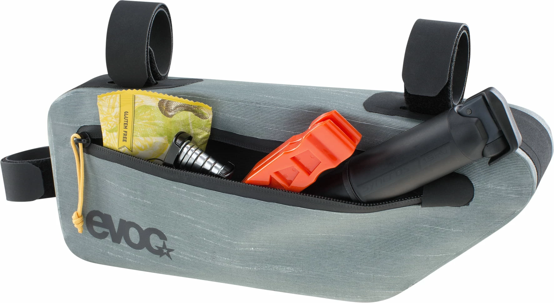 Your next ride is already planned, but you don’t know where to put your rain jacket, food and co? With the practical FRAME PACK WP frame bag you get the maximum extra storage space for each of your bike adventures, where you want to have a little more equipment. It is lightweight, easy and tight to attach to different frame shapes and neither rain, mud nor dirt can harm your bag contents even in the slightest. And best of all: through the easily accessible, wide-opening zippers you can easily access your stuff at any time, even while riding! So that there are no scratches on the paint, transparent frame protection strips are included and also the Velcro straps can be cut individually. The FRAME PACK WP is available in size S with 1.5 liters of packing volume and in size M with 3.5 liters of volume.