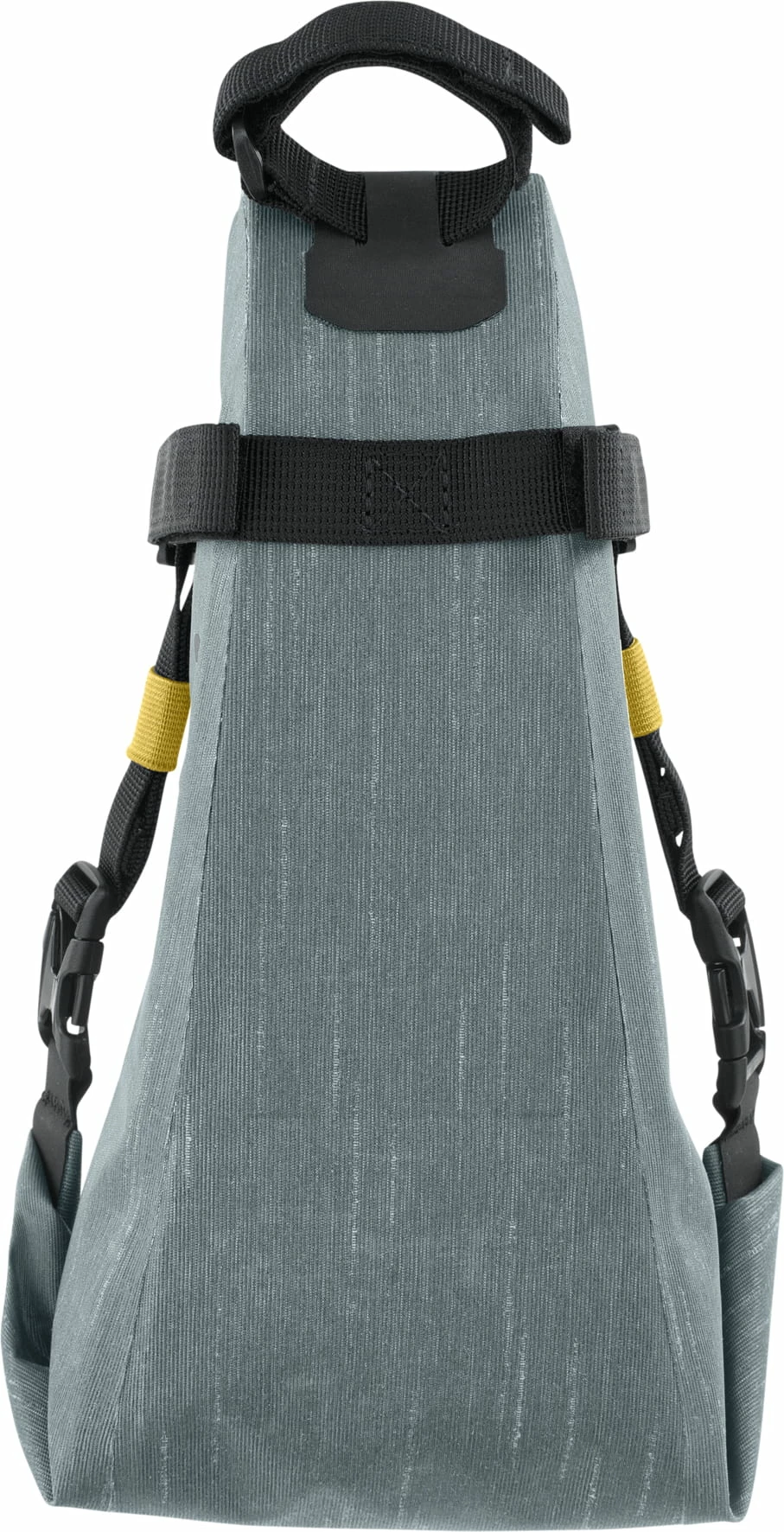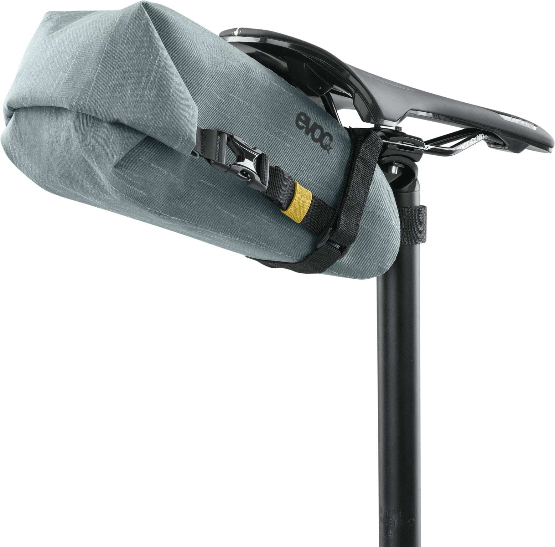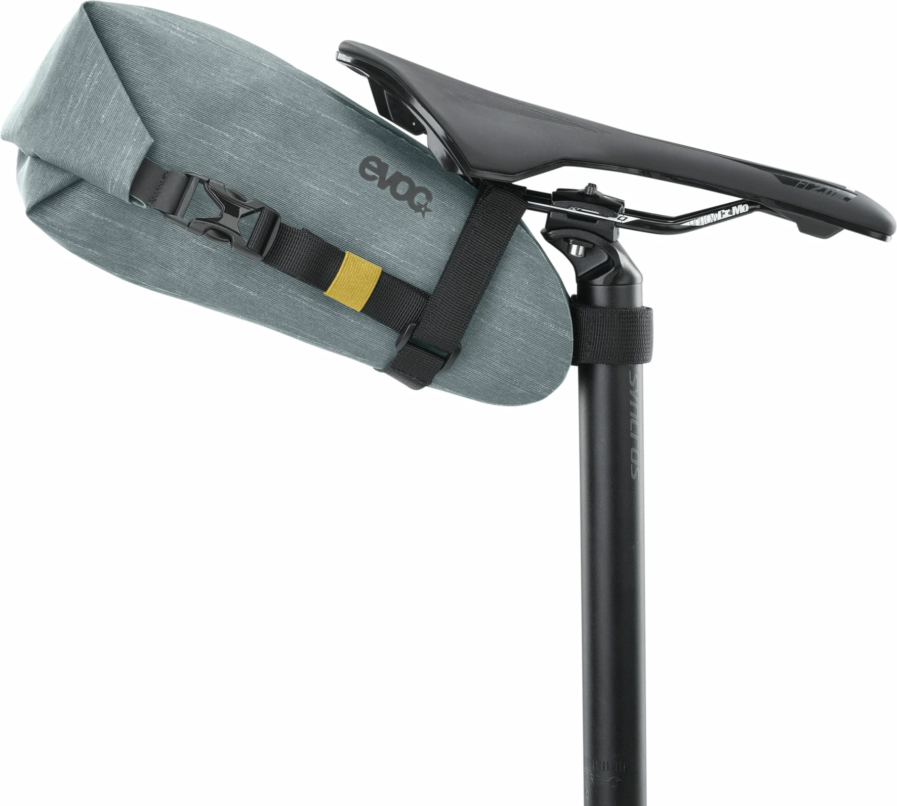 The SEAT PACK WP 2 is a lightweight, completely waterproof saddle bag for additional, compact storage space on your bike tours. It is mounted in no time via Velcro, fits on virtually any seatpost and offers with its adjustable volume space for tools, rain jacket and bar. Thanks to the abrasion-resistant, dirt-repellent and waterproof material with fully taped seams, you do not have to worry about the contents even in constant rain and mud. The large, roll-up pocket opening offers easy access and, together with the compression straps, allows for optimal compression of your equipment. So everything sits nice and tightly in place and doesn’t swing back and forth, even during athletic use.