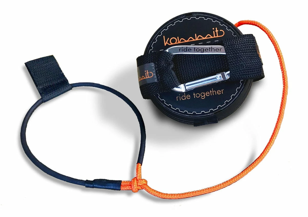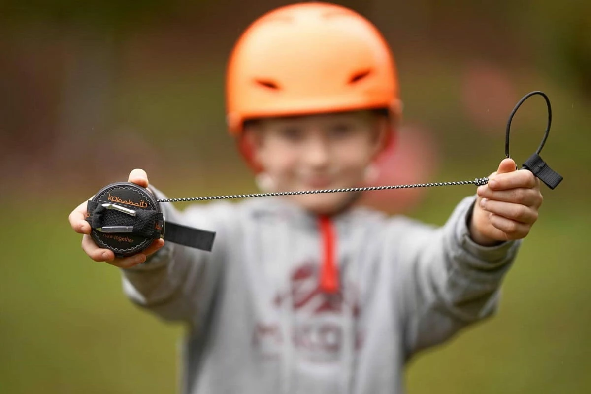 The clever Kommit traction system turns you into a bike lift for your kids. When your little bikers don’t have enough power for the ascent to the trail, the Kommit comes into play. According to the plug & play principle, the Kommit is simply attached under your saddle and sits there safely. The attachment and removal is also simple and fast. The self-retracting cable has a loop which is simply hooked onto the stem of your child’s bike and off you go. The pull rope remains permanently under tension, so that a high level of safety is guaranteed. Removing the loop is just as quick and easy and can even be done while riding. Of course, other bikers can also be supported with the Kommit, as long as the maximum pull weight of 90 kg (rider and bike) is observed. With the Kommit nothing now stands in the way of pleasure.
