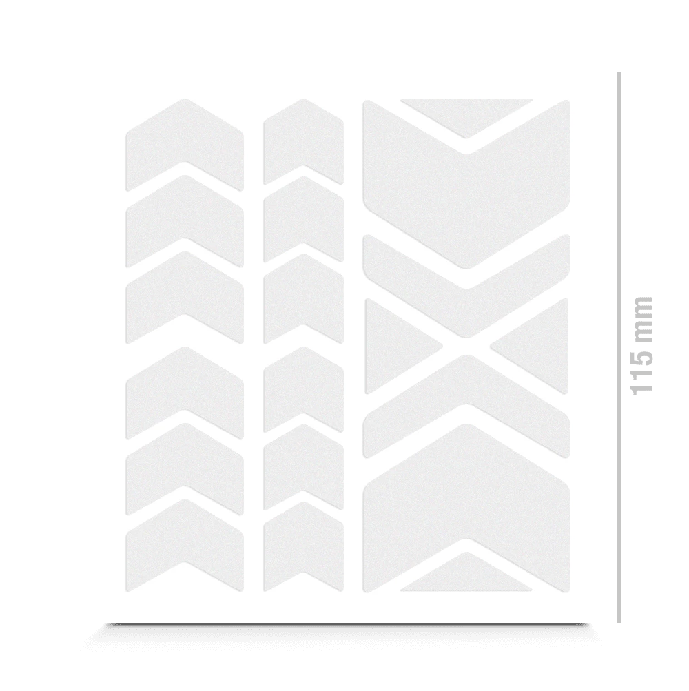 Inspired by classic frame designs from European road bike brands, these simple shapes are great and uber-subtle stickers for contours and refined details. As individually bonded arrows or grouped together thanks to application film, they blend unobtrusively into existing designs