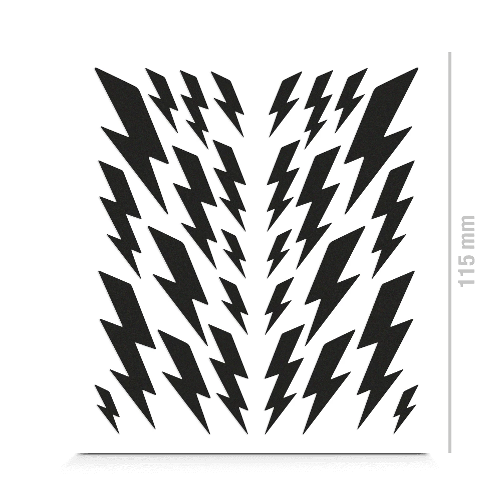The reflective stickers in the shape of lightning stand for dynamism and power. Decorating helmets with them on both sides is one possibility. With three or four of these sticker kits, you can even equip an entire (bike) frame all around.