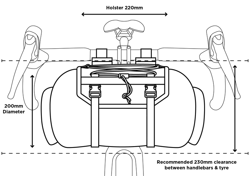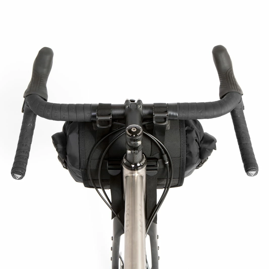 Our Bar Bag is an ideal and hassle-free luggage solution for bikepacking, touring or commuting on road, gravel and mountain bikes. With no rack, mounts or tools, the bag attaches to any bike in seconds. Foam spacers and spring-loaded cam locks provide easy and reliable attachment to the handlebars, while two lower tethers wrap around the crown of the fork for added stability.