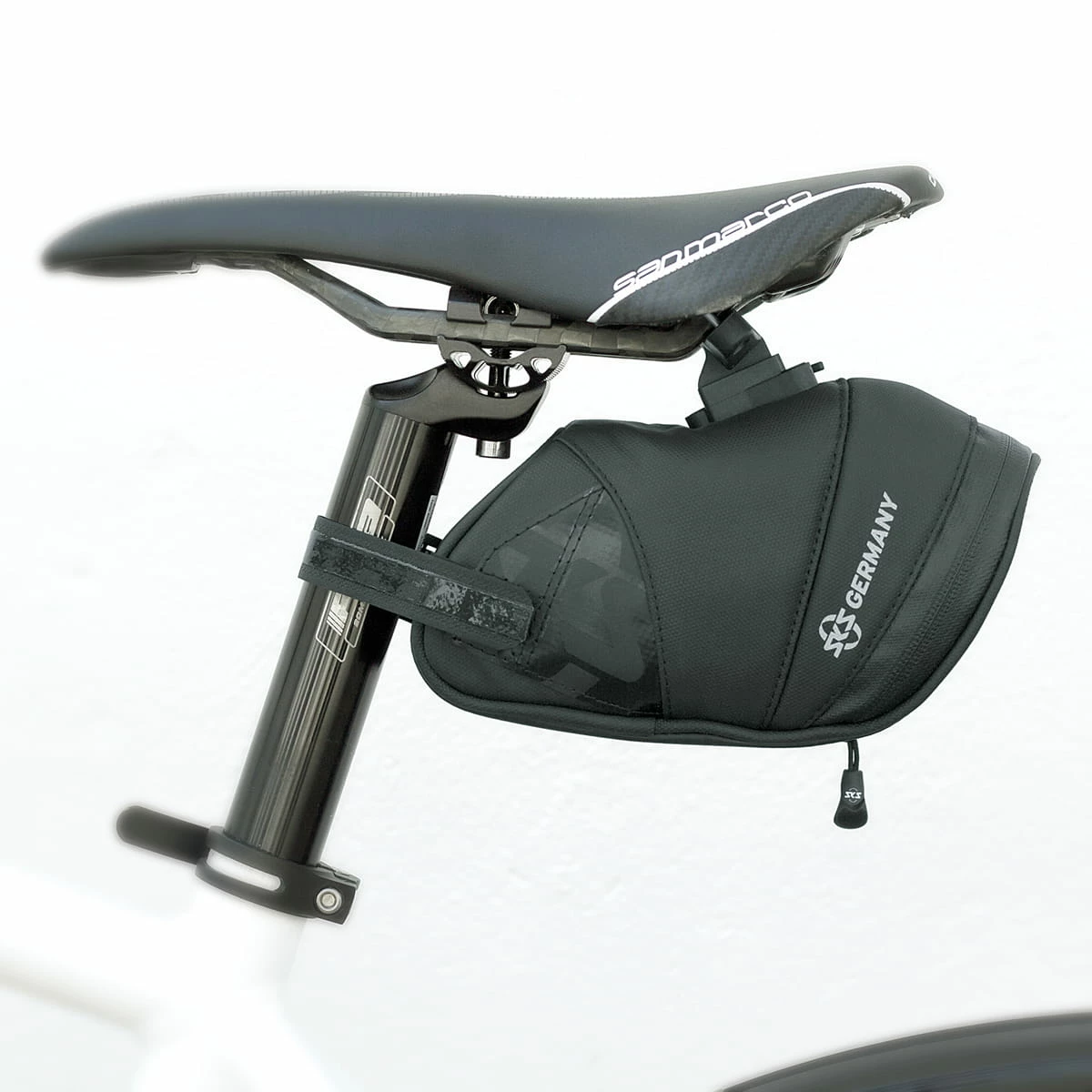 Robust and hard-wearing. Resistant materials made of rubberized, water-repellent fabric make the Explorer bike bag a must-have for every mountain biker. Reflective elements provide safety in the dark. They offer enough space for tools, spare tube and other small items and convince with further features such as laminated zippers with ergonomic Easy-Zip, practical inner pockets or the orange lining for easier finding of utensils.