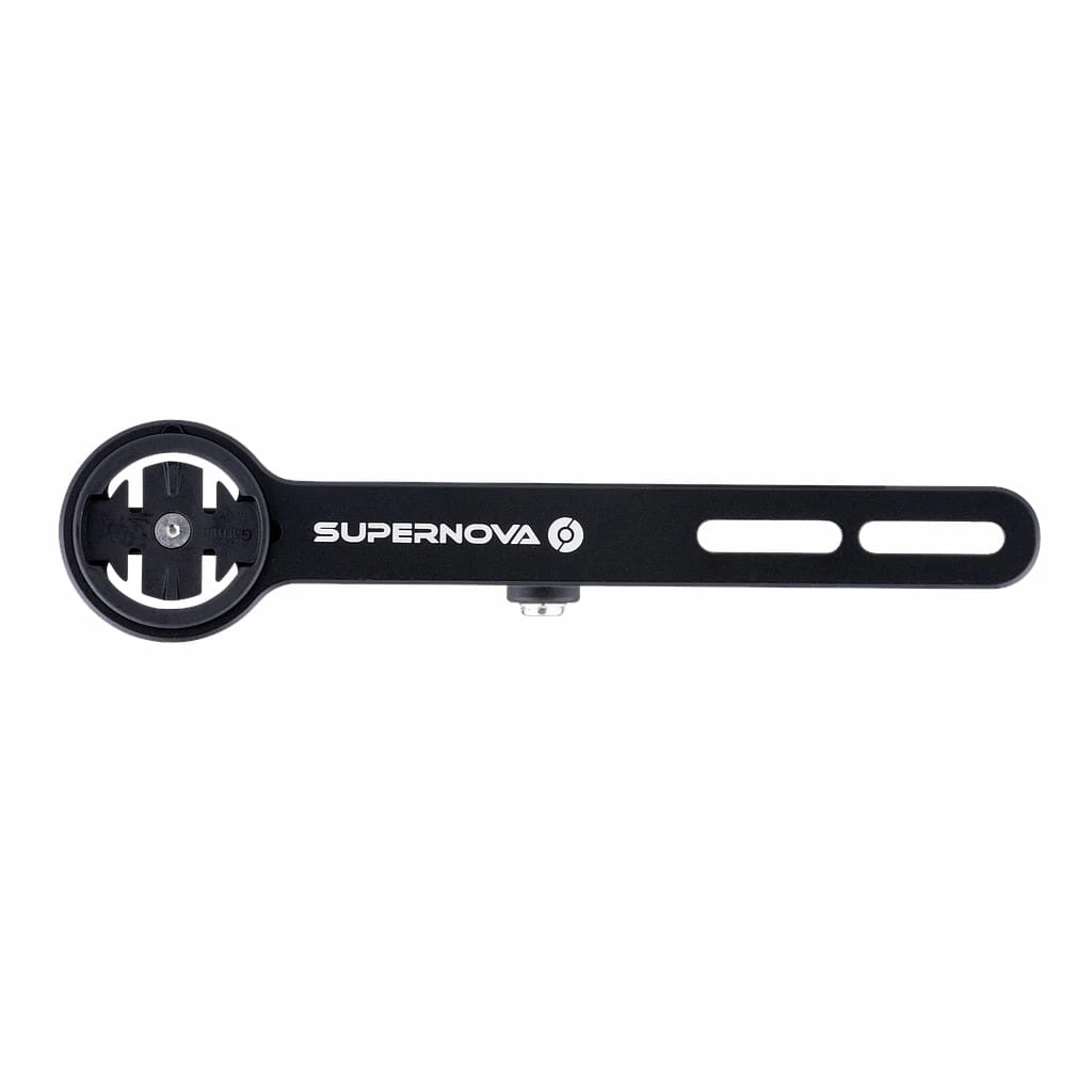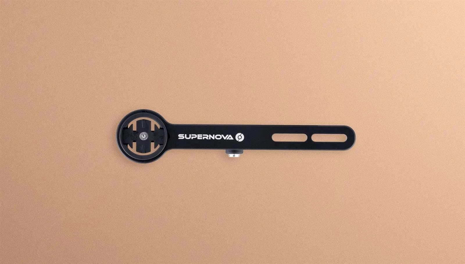 The SUPERNOVA Aero holder is perfect for integrated headlight mounting on aero handlebars. A GARMIN mount is already pre-installed and a Wahoo mount is included. For optimal installation, we also recommend the SUPERNOVA GoPro Mount.