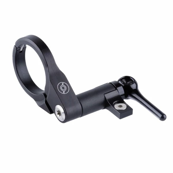 The new Universal Handlebar Mount bracket was developed in response to multiple requests from our customers who want to mount our headlights centrally on the handlebar. With the innovative split clamp with hinge you can mount the holder on both sides of the stem on the handlebar without removing a handlebar grip, the shift or brake lever. The quick release makes it easy to take the Airstream off the bike.